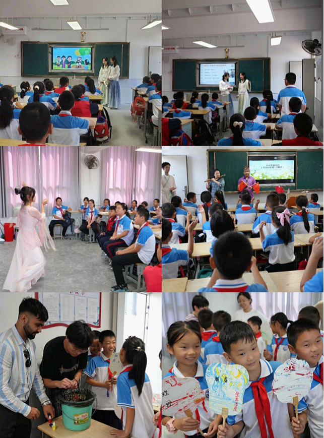 在文化传承活动中,杏林书香志愿服务队的同学为四年级学生讲解了中国的扇文化知识,详细介绍了漆扇的历史渊源、制作工艺、文化内涵、艺术价值等方面的知识。教辅单位分工会职工们一起手把手教小朋友做起了漆扇,大家发挥自己的创意,设计出独特的图案和色彩搭配。在制作过程中师生们相互帮助,共同探讨制作技巧,现场欢声笑语不断,气氛热烈而温馨。活动还设置了经典诗句接龙环节,通过趣味互动的方式,进一步加深了大家对中华优秀传统文化的理解和认同。